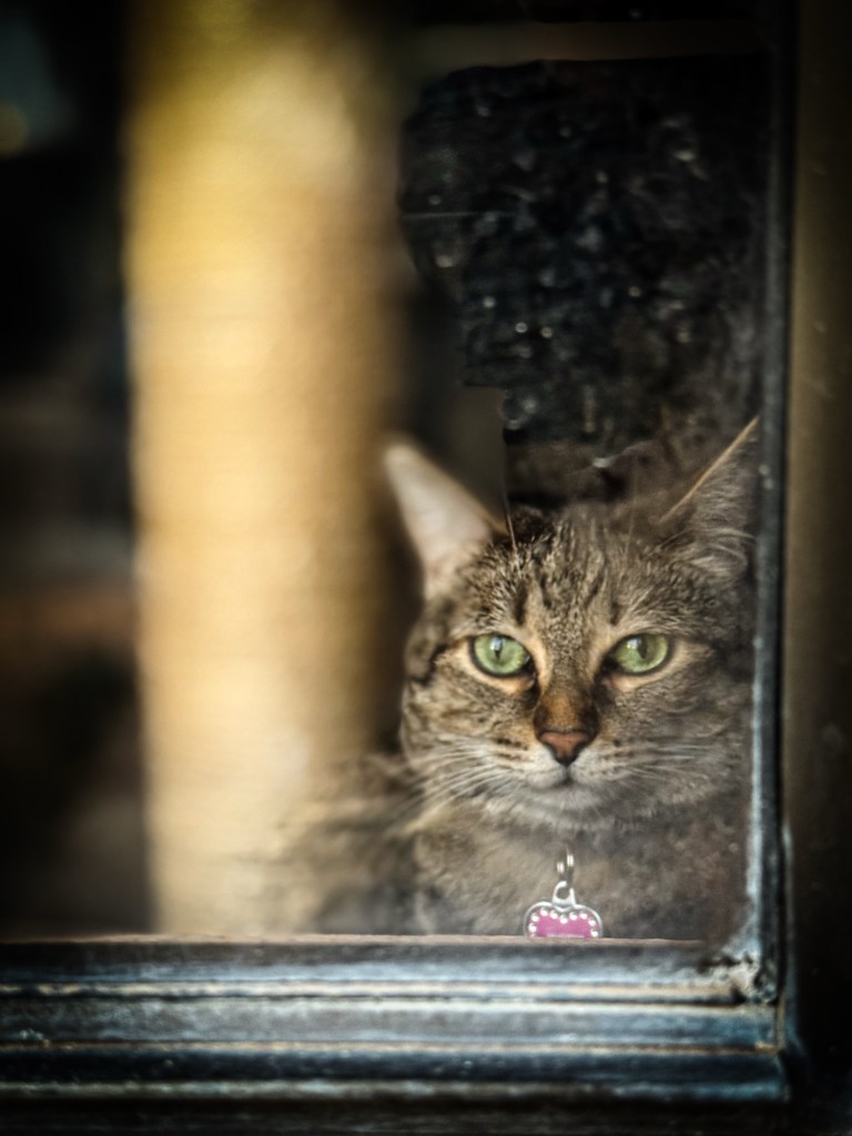 Walter sits in one of her favorite places to keep an eye on the birds. As a kitten, she was named after Walter Mitty while living the rough life on the streets of Tempe. My wife coaxed Walter indoors where she now rules the house.